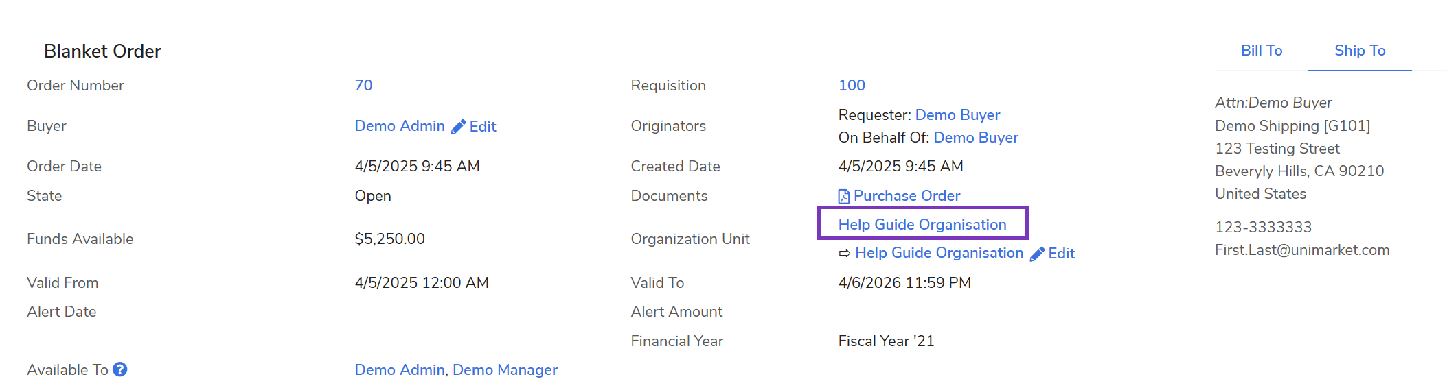This guide provides troubleshooting steps for Community Administrators when the desired parent Organization Unit (Org Unit) is not appearing. As an option in the Organization Unit field, under the Approvals section on the Checkout screen, for a new Blanket Release Order.
