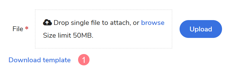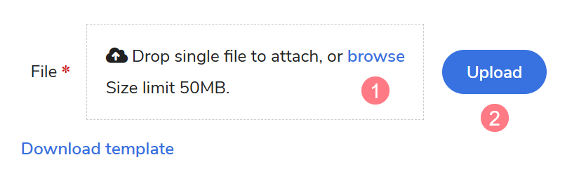 Download Template: Click Download template to get the correctly formatted CSV file.
