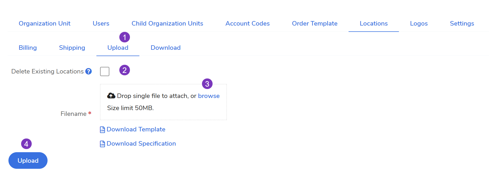 Deletions: If a Ship-to address is removed via upload, it will be automatically removed from the profile of any user who had it set as their default.