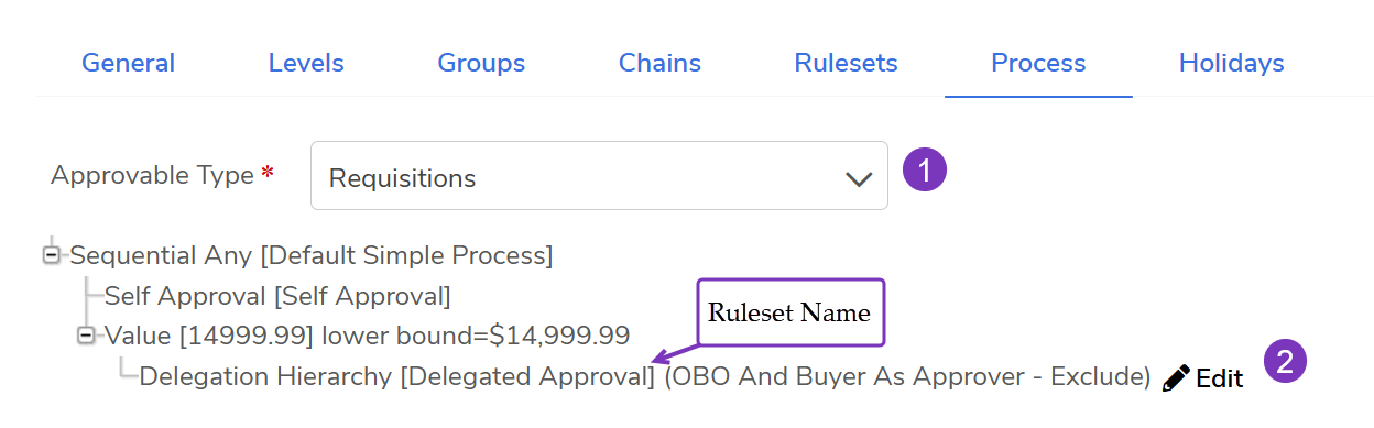 - Go to the Administration module > Approvals > Process tab > in the Approvable Type field, select Requisitions.