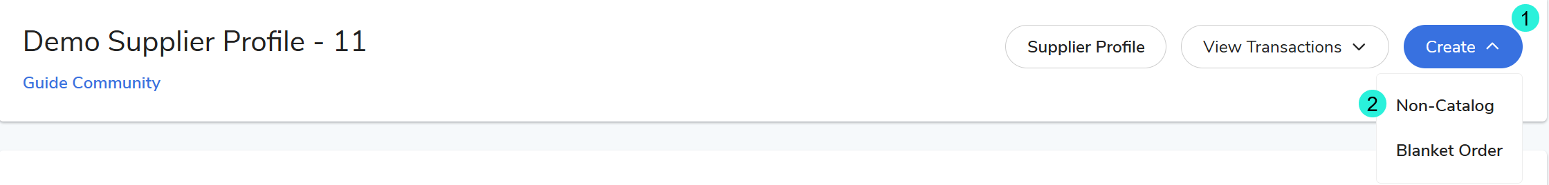 Create Non-Catalog: On the desired supplier detail screen > in the Create icon dropdown > click Non-Catalog.