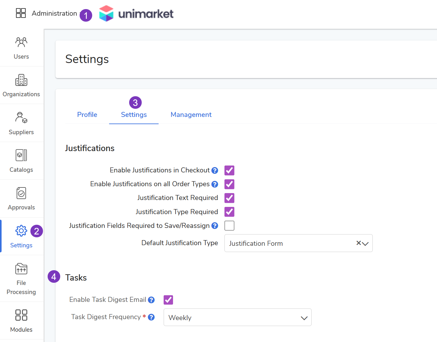 Unimarket Settings: