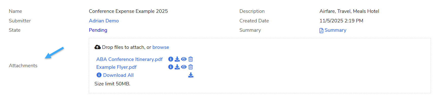 - State: Filter by the current lifecycle status (e.g., Pending Approval, Downloaded, or Paid).