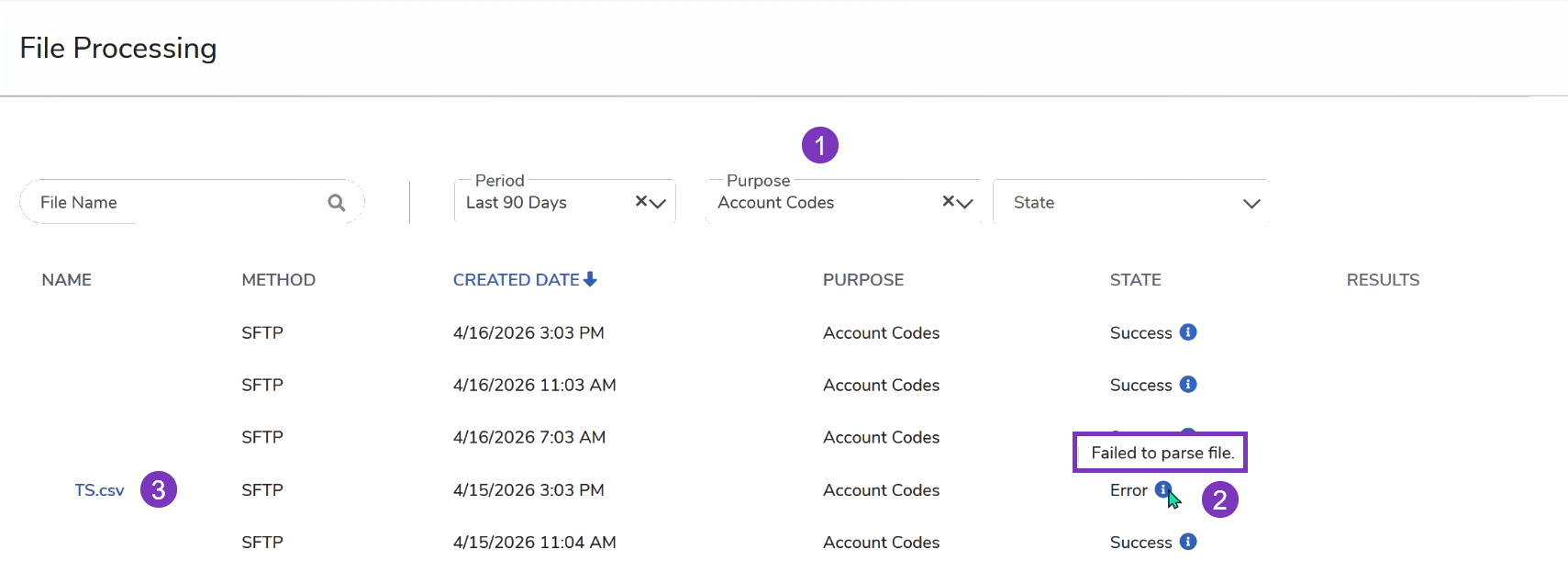 - If it simply says "Failed to Parse," download the uploaded file that errored. By clicking the named file hyperlink (in blue) and proceed with the technical checks below.